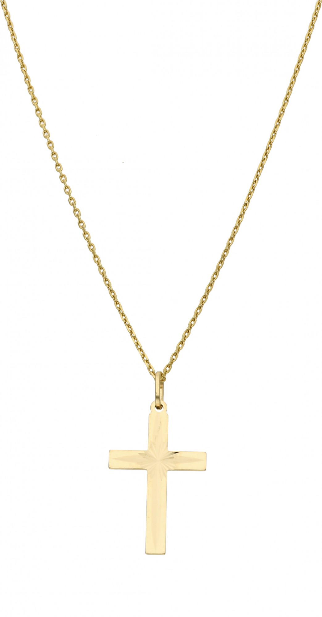 Prosty, złoty krzyżyk o diamentowanej powierzchni to minimalistyczna ozdoba dla kobiet i mężczyzn, która może towarzyszyć Ci każdego dnia. Dla osób wierzących może być wspaniałym wsparciem duchowym, noszonym blisko serca, a dla innych - intrygującym uzupełnieniem ubioru.