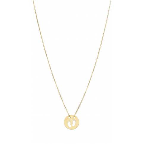 Modna celebrytka z ażurową zawieszką przedstawia urocze dziecięce stópki. Jest w całości wykonana z żółtego złota. To wspaniały prezent dla młodej mamy, babci lub innej bliskiej osoby. Podarowanie celebrytki stanowi także niezapomniany sposób na przekazanie komuś bliskiemu wspaniałej wieści o oczekiwaniu na nowego członka rodziny!