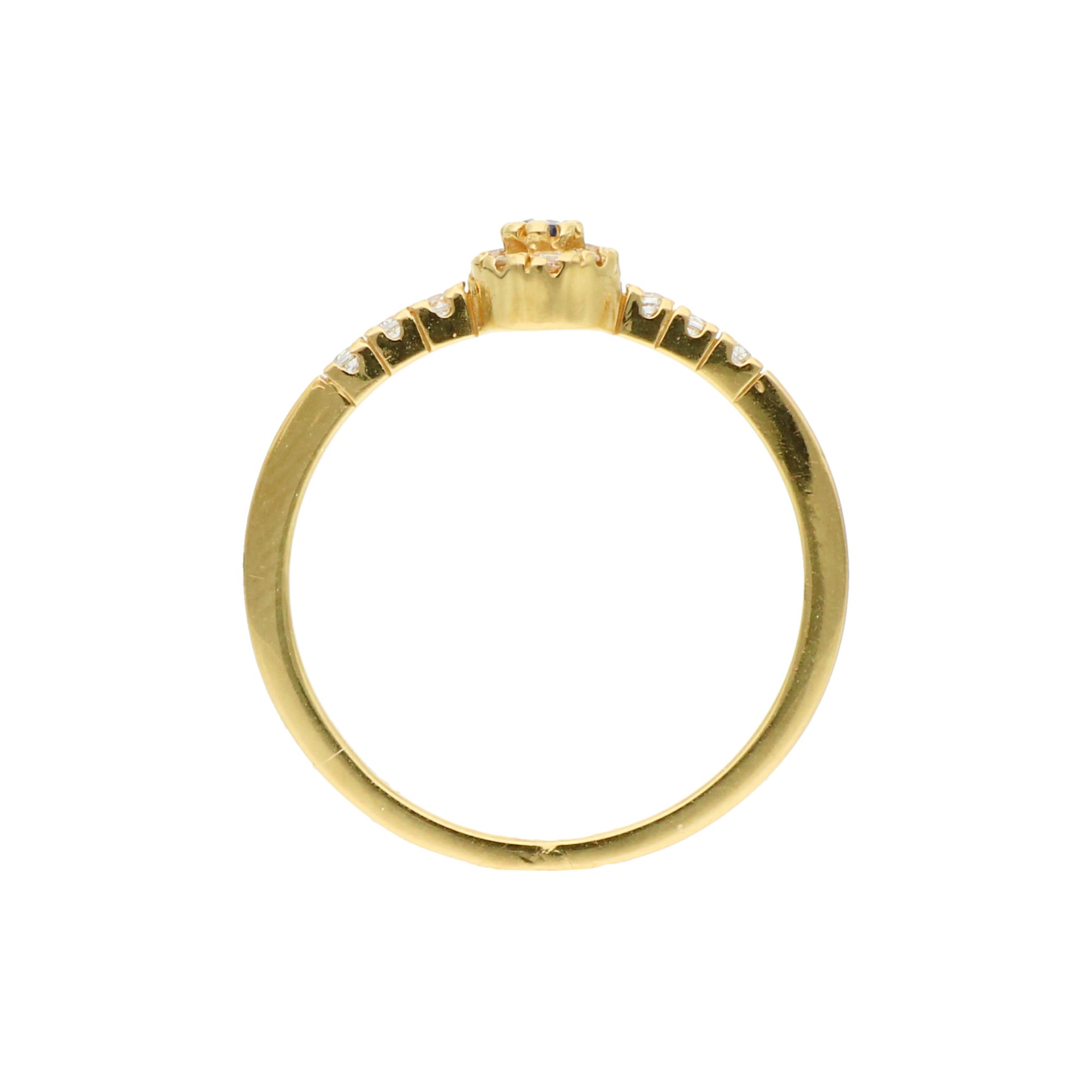 Uroczy, delikatny pierścionek z żółtego złota (próba 585), aplikowany cyrkoniami, to skromna ozdoba dla kobiet, które preferują subtelną biżuterię. Delikatny dodatek z łatwością dopasuje się do różnych stylizacji i może towarzyszyć swojej właścicielce każdego dnia. To piękna, bardzo dziewczęca biżuteria.