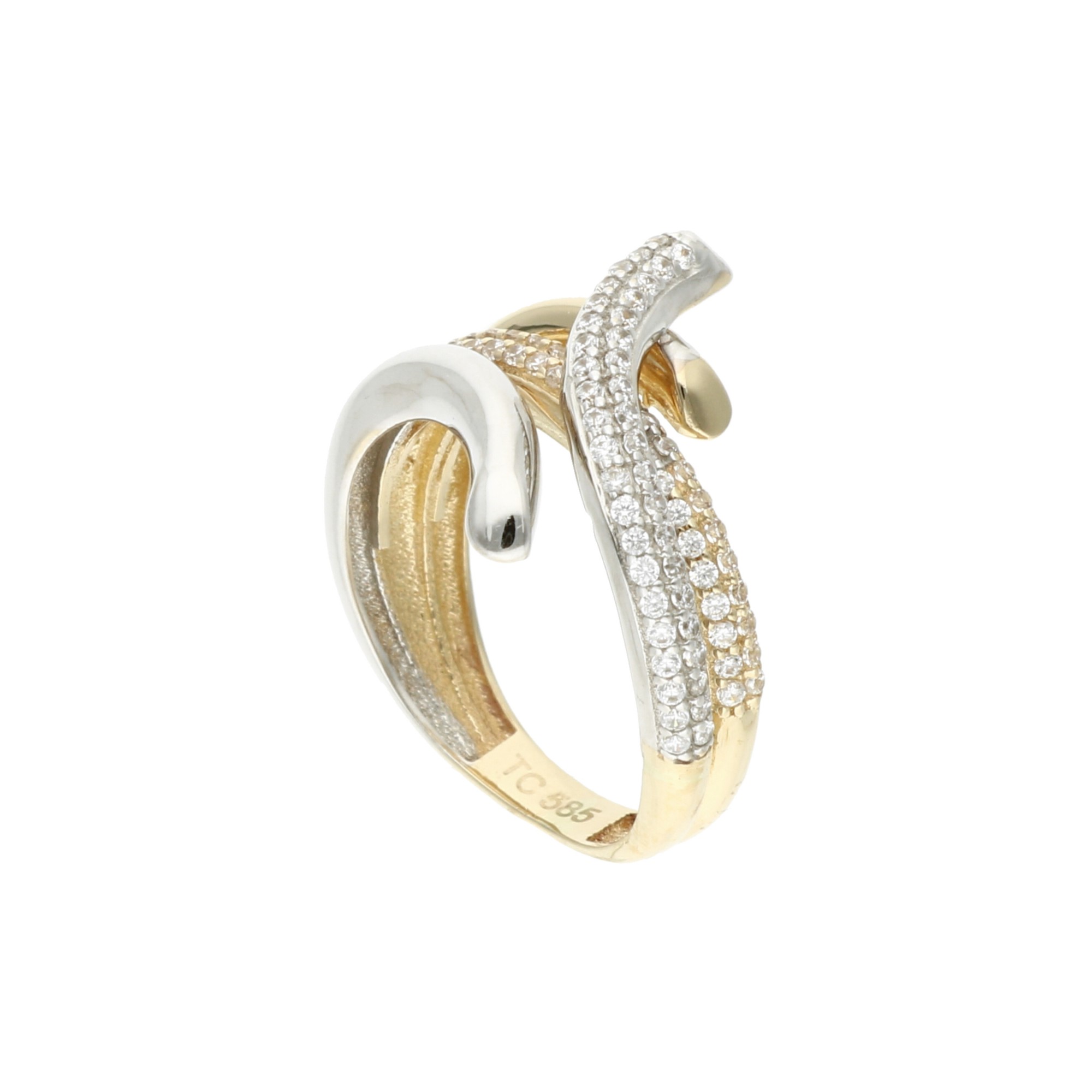 Złoty pierścionek z rodowaniem i cyrkoniami