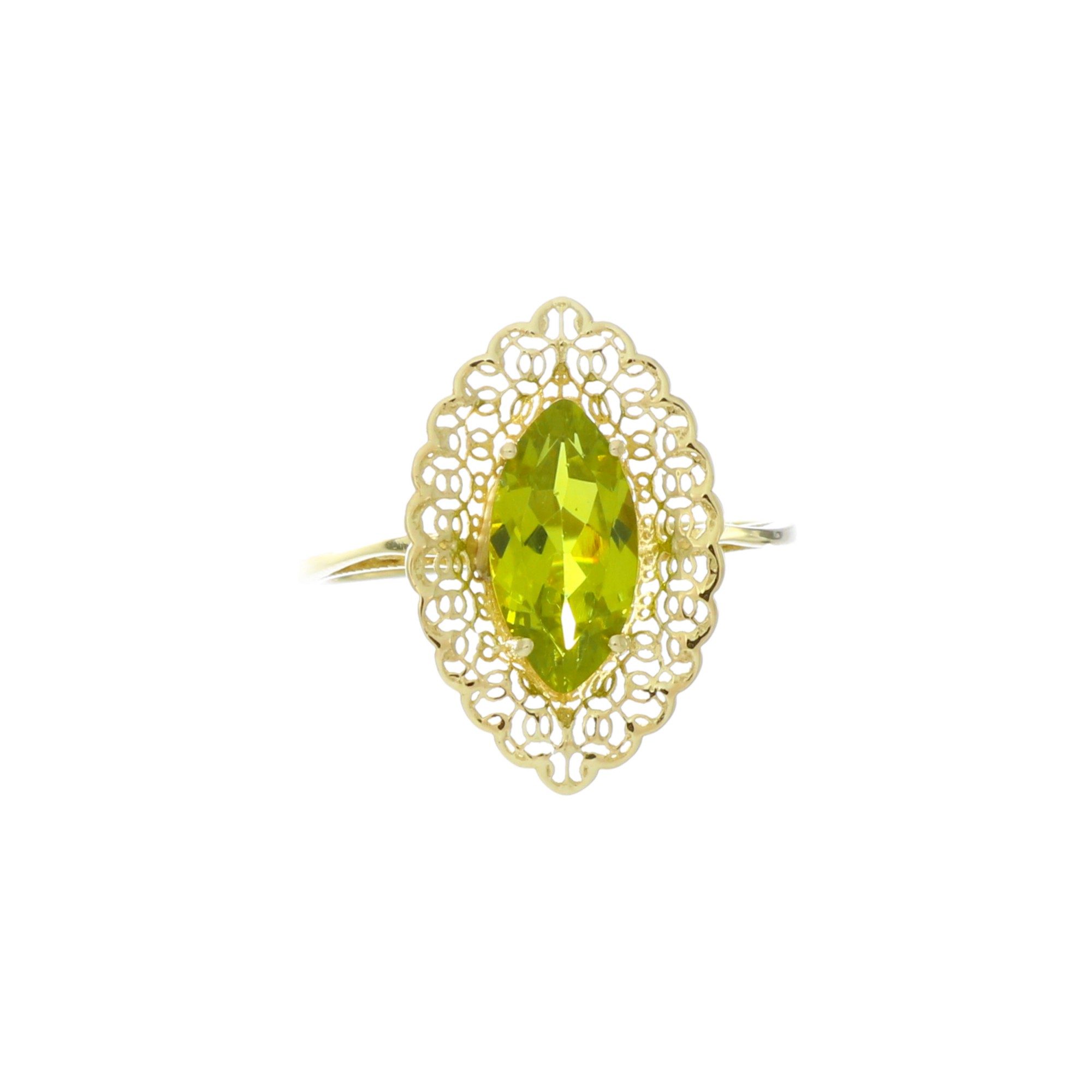 Intygujący pierścionek z ażurowymi zdobieniami z żółtego złota, zachwyca kunsztownym wykonaniem i wyjątkowym projektem. To biżuteria dla kobiety, która ceni ponadczasowe dodatki i poszukuje oryginalnych ozdób. Tajemniczy zultanit osadzony w centralnym punkcie pierścionka jest jednak jego najciekawszym elementem.