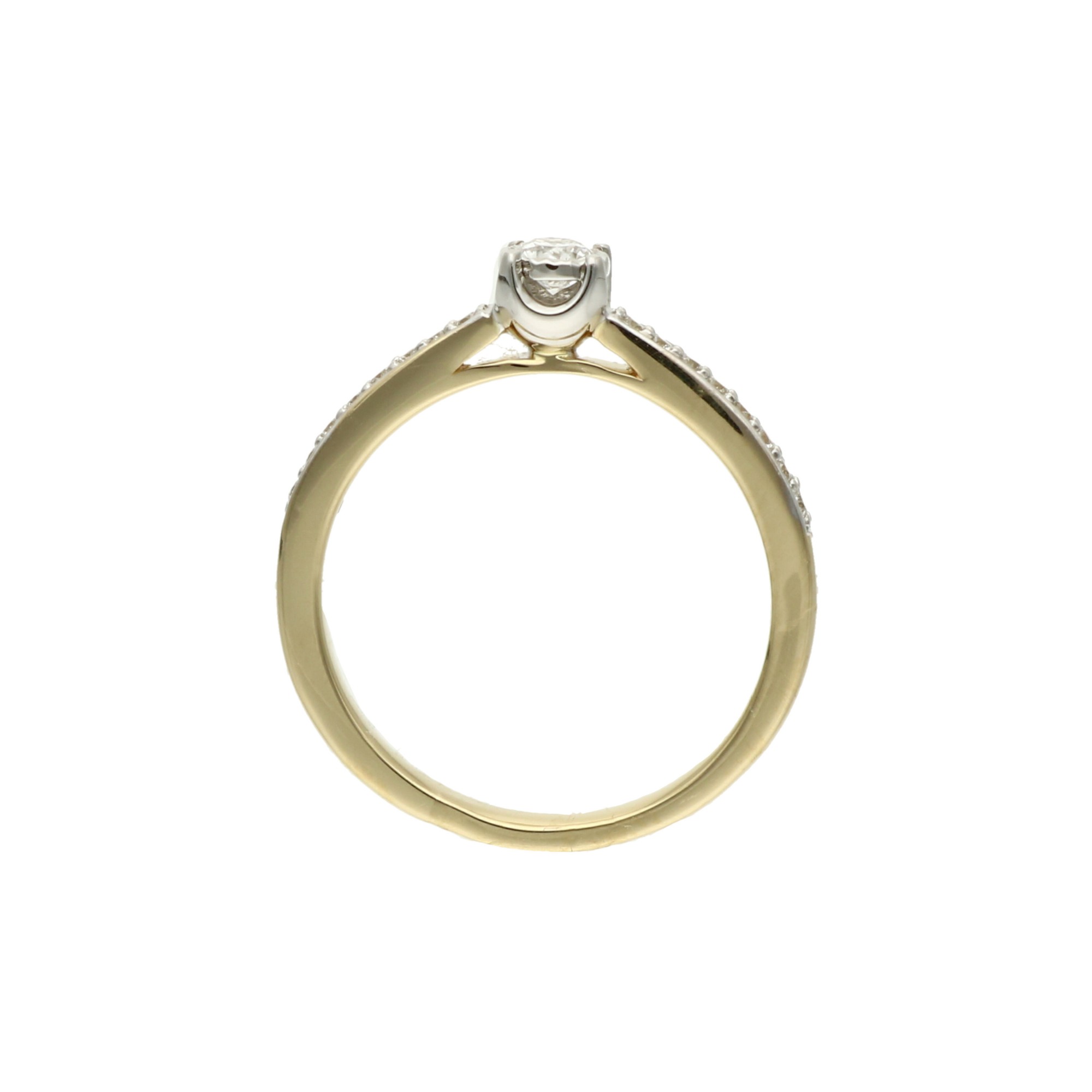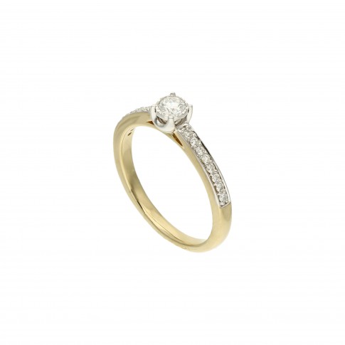 Piękny, klasyczny pierścionek z brylantami, wykonany z żółtego złota, to ponadczasowa biżuteria dla wyjątkowych kobiet. Niepowtrzalna ozdoba zachwyca jakością wykonania i dbałością o szczegóły. To prawdziwy kunszt sztuki jubilerskiej, który będzie pięknym symbolem Waszej miłości i przetrwa wiele lat.