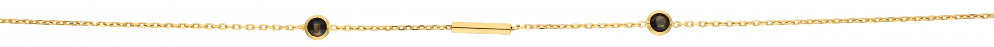 Delikatna bransoletka ze złota, uzupełniona maleńkimi cyrkoniami, doskonale prezentuje się na nogach, które złapały pierwszą tego lata opaleniznę. Biżuteria mieni się w promieniach słońca, nadając swojej właścicielce zmysłowego blasku. Jeśli dobrze czujesz się w niekonwencjonalnej biżuterii, ta bransoletka zdobędzie Twoje serce.